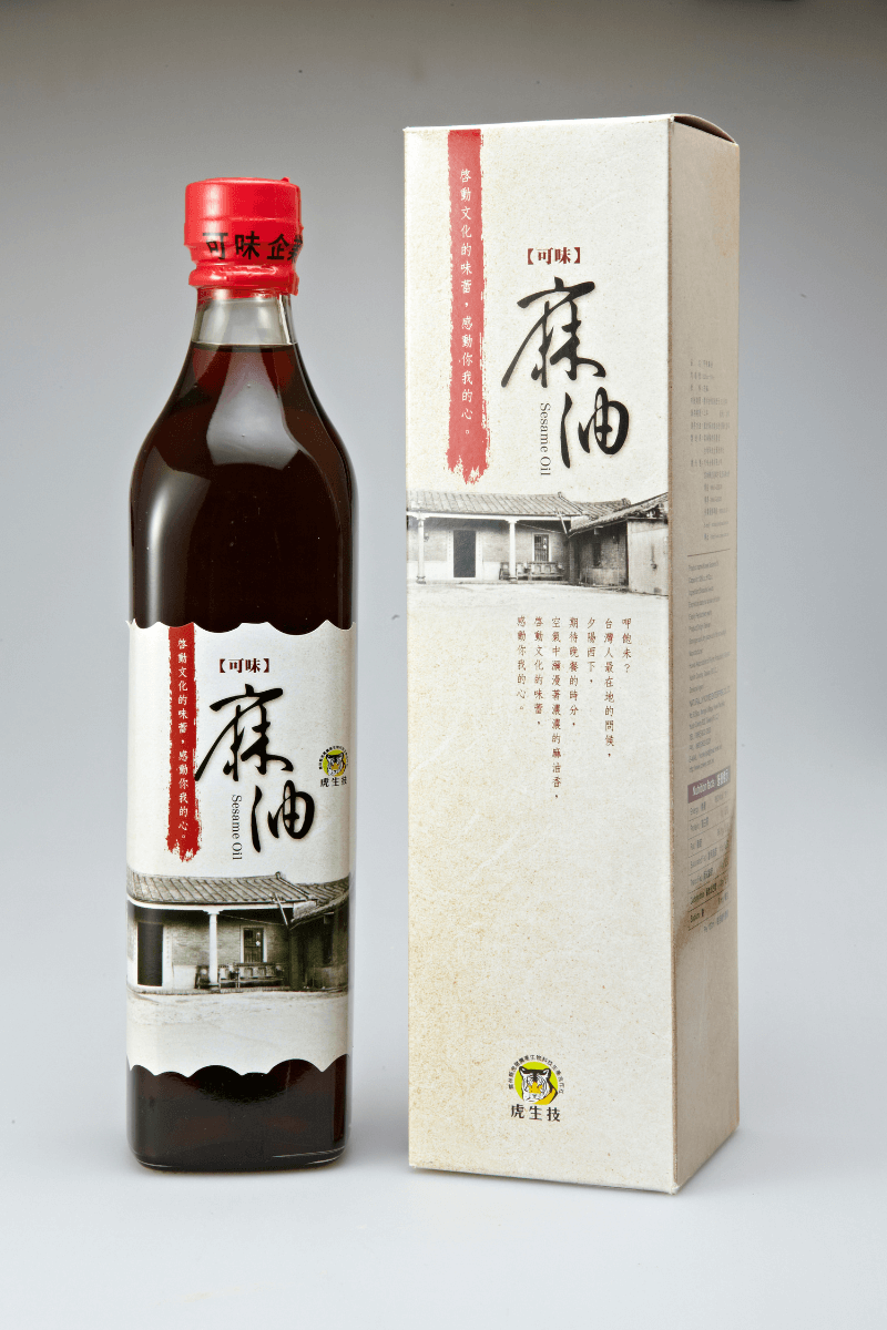 品名:可味麻油。 成份:黑芝麻。 保存期限:2年。 保存方法:置於蔭乾處並避免陽光直曝。 簡介: 可味麻油是以黑芝麻壓榨而成,含有豐富營養,穩定性强,易保存,並含有維他命E及亞麻油酸等抗氧化成份,不含反式脂肪酸,是最天然健康之油品。常食用有益身體,是產婦坐月子的必備品。可做成料理麻油養身餐、麻油雞、麻油腰子、麻油豬肝、麻油麵線、麻油煎蛋、麻油飯、薑母鴨、燒酒雞、麻油煎生蠔等...等。